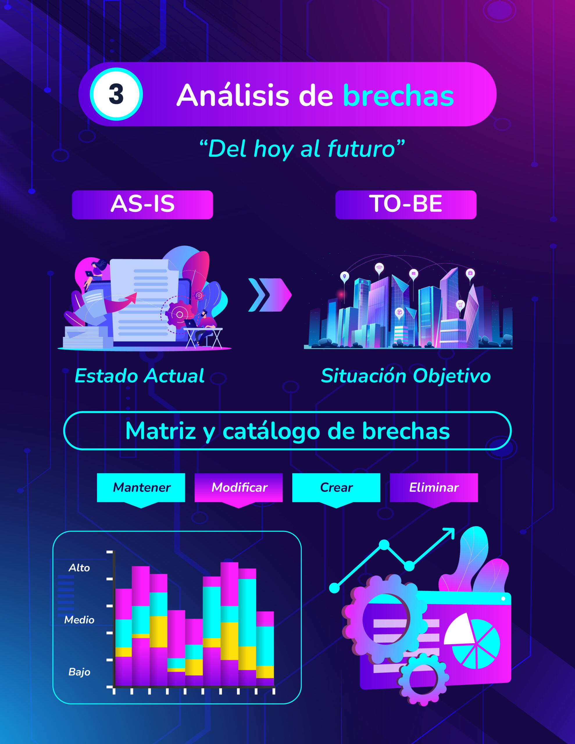 Salida: brechas identificadas y priorizadas, que explican qué impide pasar del “hoy” al “futuro”.